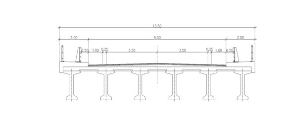 Η διατομή της οδού που χρησιμοποιήθηκε για την μελέτη του τεχνικού είναι η κατηγορία γ2 με συνολικό πλάτος επί του τεχνικού γεφύρωσης b=13.50m συμπεριλαμβανομένων των πεζοδρομίων.