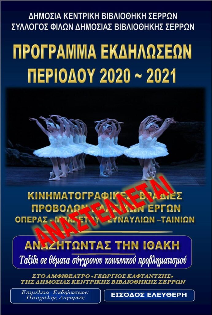 Αναστολή εκδηλώσεων 2020-2021 του Συλλόγου Φίλων της Δημόσιας Βιβλιοθήκης Σερρών