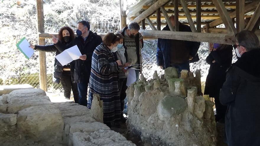 Η κ. Μενδώνη επισκέφτηκε τον χώρο προκειμένου να ενημερωθεί για την εξέλιξη των εργασιών στον Τύμβο Καστά και στον σχεδιασμό του έργου της συντήρησης και ανάδειξης της Αρχαίας Ξύλινης Γέφυρας της Αμφίπολης