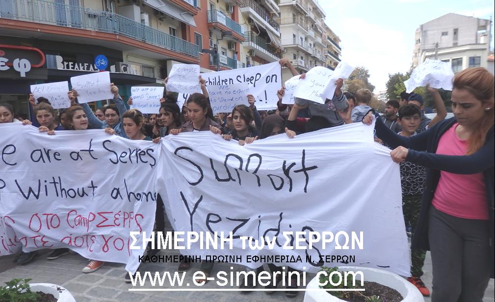Πορεία διαμαρτυρίας των προσφύγων Γεζίντι στο κέντρο της πόλης των Σερρών