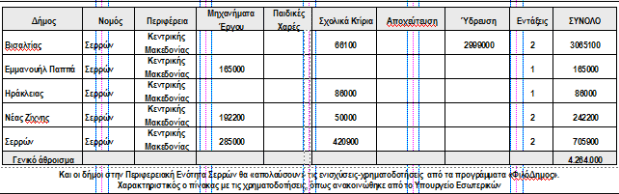 Υπερδιπλασιάζουν τα διαθέσιμα ποσά για τη συντήρηση σχολείων, καθώς η χρηματοδότηση μέσω του «ΦιλόΔημος ΙΙ» είναι επιπρόσθετη της ετήσιας τακτικής ενίσχυσης για τον ίδιο σκοπό, η οποία αυξήθηκε για το 2018 στα 28 εκατ. ευρώ