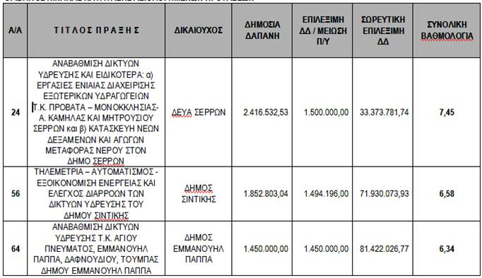 Από την Περιφερειακή Ενότητα Σερρών αξιολογήθηκαν και επιλέχθηκαν οι προτάσεις της ΔΕΥΑ Σερρών, του Δήμου Σιντικής και του Δήμου Εμμανουήλ Παππά.