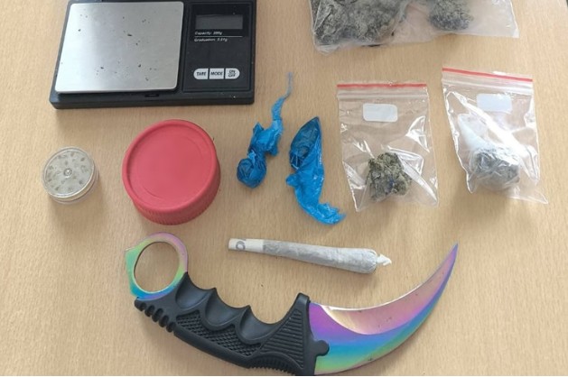 Σε έρευνα που έγινε στην οικία του, με τη συνδρομή και του αστυνομικού σκύλου ανίχνευσης ναρκωτικών «Roxy», βρέθηκαν και κατασχέθηκαν 2 συσκευασίες με ακατέργαστη κάνναβη βάρους 36 γραμμαρίων, ποσότητα ακατέργαστης κάνναβης βάρους 2 γραμμαρίων, 1 ηλεκτρονική ζυγαριά ακριβείας, 2 πλαστικοί τρίφτες και 1 μαχαίρι.