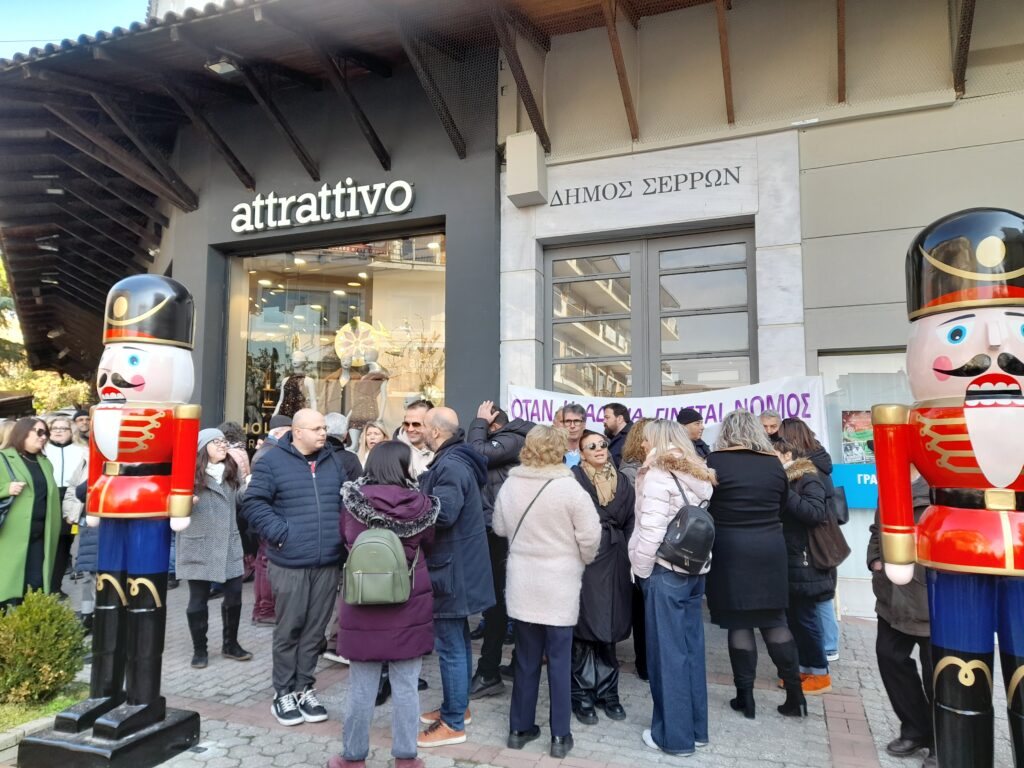 Μπροστά στο Δημαρχείο Σερρών πραγματοποιήθηκε στις 12 το μεσημέρι της Τρίτης 16 Δεκεμβρίου 2025 συγκέντρωση διαμαρτυρίας δημοτικών υπαλλήλων και δημοτικών συμβούλων.