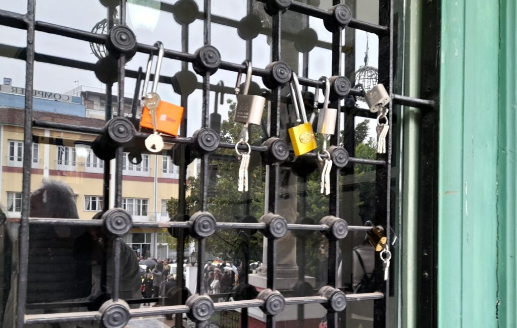 Σε μια συμβολική κίνηση οι διαμαρτυρόμενοι άφησαν λουκέτα με κλειδιά στην πόρτα του Διοικητηρίου Σερρών.