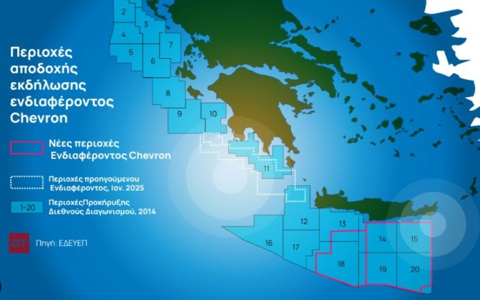 Η ExxonMobil από κοινού με την Helleniq Energy, υπενθυμίζεται, έχουν τα δικαιώματα έρευνας σε άλλες δύο μεγάλες θαλάσσιες περιοχές, δυτικά και νοτιοδυτικά της Κρήτης.