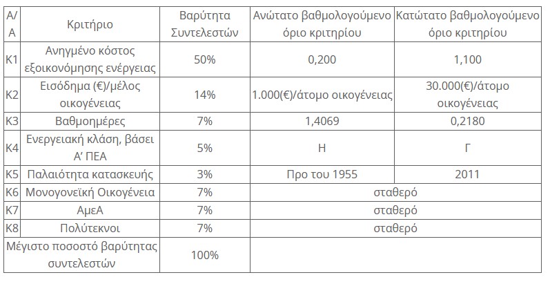 -Να έχουν καταταχθεί βάσει του Πρώτου Πιστοποιητικού Ενεργειακής Απόδοσης (Α’ Π.Ε.Α.) σε κατηγορία χαμηλότερη ή ίση της Γ.
