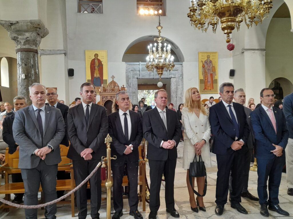 Παρόντες ήταν οι τέως βουλευτές και υποψήφιοι εκ νέου βουλευτές Σερρών Κώστας Καραμανλής, Φωτεινή Αραμπατζή, Τάσος Χατζηβασιλείου, Θεόφιλος Λεονταρίδης, ο αντιπεριφερειάρχης Σερρών κ. Παναγιώτης Σπυρόπουλος, ο δήμαρχος Σερρών κ. Αλέξανδρος Χρυσάφης, o υποψήφιος Βουλευτής Κωνσταντίνος Βέρρος, ο Διοικητής του 10ου Συντάγματος ΠΖ κ. Αδάμ Σαρρής, ο Διευθυντής της Αστυνομικής Διεύθυνσης Σερρών κ. Ευάγγελος Τσιώτας, ο διευθυντής της Πυροσβεστικής Υπηρεσίας Σερρών κ. Νίκος Παπαδόπουλος, η ηγουμένη της Ιεράς Μονής Τιμίου Προδόμου Σερρών Γερόντισσα Φεβρωνία, μοναχές των ιερών μονών των Σερρών και πλήθος κόσμου, η ηγουμένη της Ιεράς Μονής Παναγίας Βύσσιανης Σερρών γερόντισσα Ισιδώρα και η ηγουμένη της Ιεράς Μονής Προφήτη Ηλιού Αγίου Πνεύματος Ακυλίνα, μετά των συνοδειών αυτών, εκπρόσωποι θεσμικών φορέων, μαθητές και μαθήτριες του 1ου και 3ου Γυμνασίου Σερρών και πλήθος Σερραίων.