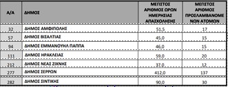 Ο Δήμος καθορίζει ελεύθερα τις ώρες ημερήσιας απασχόλησης των ατόμων που προσλαμβάνει, υπό την προϋπόθεση τήρησης των μέγιστων ορίων που αποτυπώνονται στις δύο (2) στήλες του πίνακα.