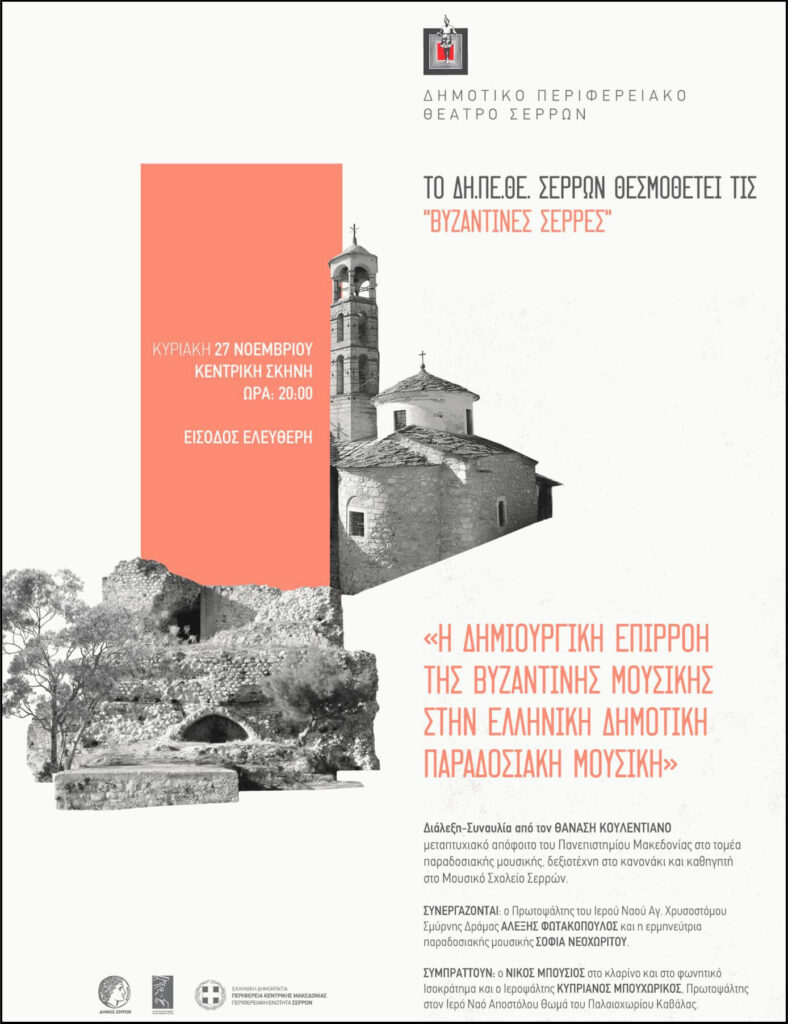 ΚΑΘΕ ΜΗΝΑ ΝΟΕΜΒΡΙΟ (ΜΗΝΑ ΕΟΡΤΑΣΜΟΥ ΤΩΝ ΠΟΛΙΟΥΧΩΝ ΜΕΓΑΛΩΝ ΤΑΞΙΑΡΧΩΝ) ΘΑ ΟΡΓΑΝΩΝΟΝΤΑΙ ΕΠΙΣΤΗΜΟΝΙΚΑ ΚΑΙ ΚΑΛΛΙΤΕΧΝΙΚΑ ΑΦΙΕΡΩΜΑΤΑ ΣΤΟ ΒΥΖΑΝΤΙΝΟ «ΠΡΟΣΩΠΟ» ΤΗΣ ΠΟΛΗΣ ΤΩΝ ΣΕΡΡΩΝ