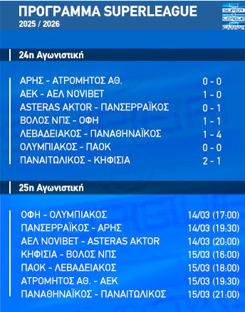 Μετά την 24η αγωνιστική του πρωταθλήματος της Super League