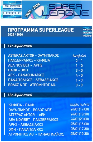 Μετά την ολοκλήρωση της 17ης αγωνιστικής της Stoiximan Super League