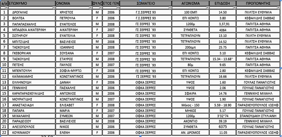 Οι επιλεγμένοι αθλητές και αθλήτριες από το Ν. Σερρών-Οι προπονητές (Πίνακας)