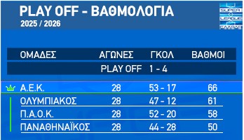 iii. Εάν και τότε προκύψει νέα ισοβάθμηση ομάδων, τότε, για τις ομάδες που εκ νέου ισοβαθμούν, συντάσσεται νέος ειδικός βοηθητικός πίνακας με κριτήριο τη θέση που κατέλαβε η κάθε ομάδα μεταξύ των εκ νέου ισοβαθμούντων ομάδων στην Κανονική Περίοδο του Πρωταθλήματος σύμφωνα με την παρ. 5 ανωτέρω.