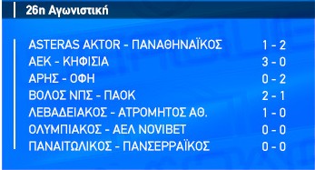 Ο Παναθηναϊκός πέρασε από την Τρίπολη (1-2 τον Αστέρα) και είναι στο -8 από την τρίτη θέση, ενώ ο Άρης έχασε και από τον ΟΦΗ και τερμάτισε 8ος. Στην 6η θέση οι Κρητικοί, στην 7η οι Βολιώτες μετά την μεγάλη ανατροπή με 2-1 επί του ΠΑΟΚ.